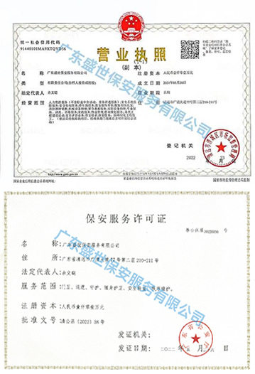 廣東盛世保安服務有限公司是為適應中國保安行業面臨的新形勢,經區、市、省三級公安主管部門批準,依法在工商機關登記注冊成立的一家具有保安行業經營新思路、保安管理多元化發展的保安服務企業,在保安服務行業日趨綜合性的市場發展格局中,我公司一直本著持續改進與持續完善的服務宗旨,將公司發展成為一家集多元化、多業態發展的保安服務新興企業。